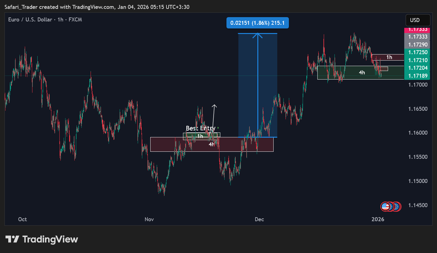 This week EURUSD has two options: entering on the 15-minute timeframe for the potential upward move on the 4-hour chart, or waiting for a bullish signal on the 4-hour timeframe.